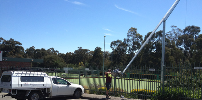 SPD Electrics design and construction of a new night pennant approved lighting system to main bowls arena.